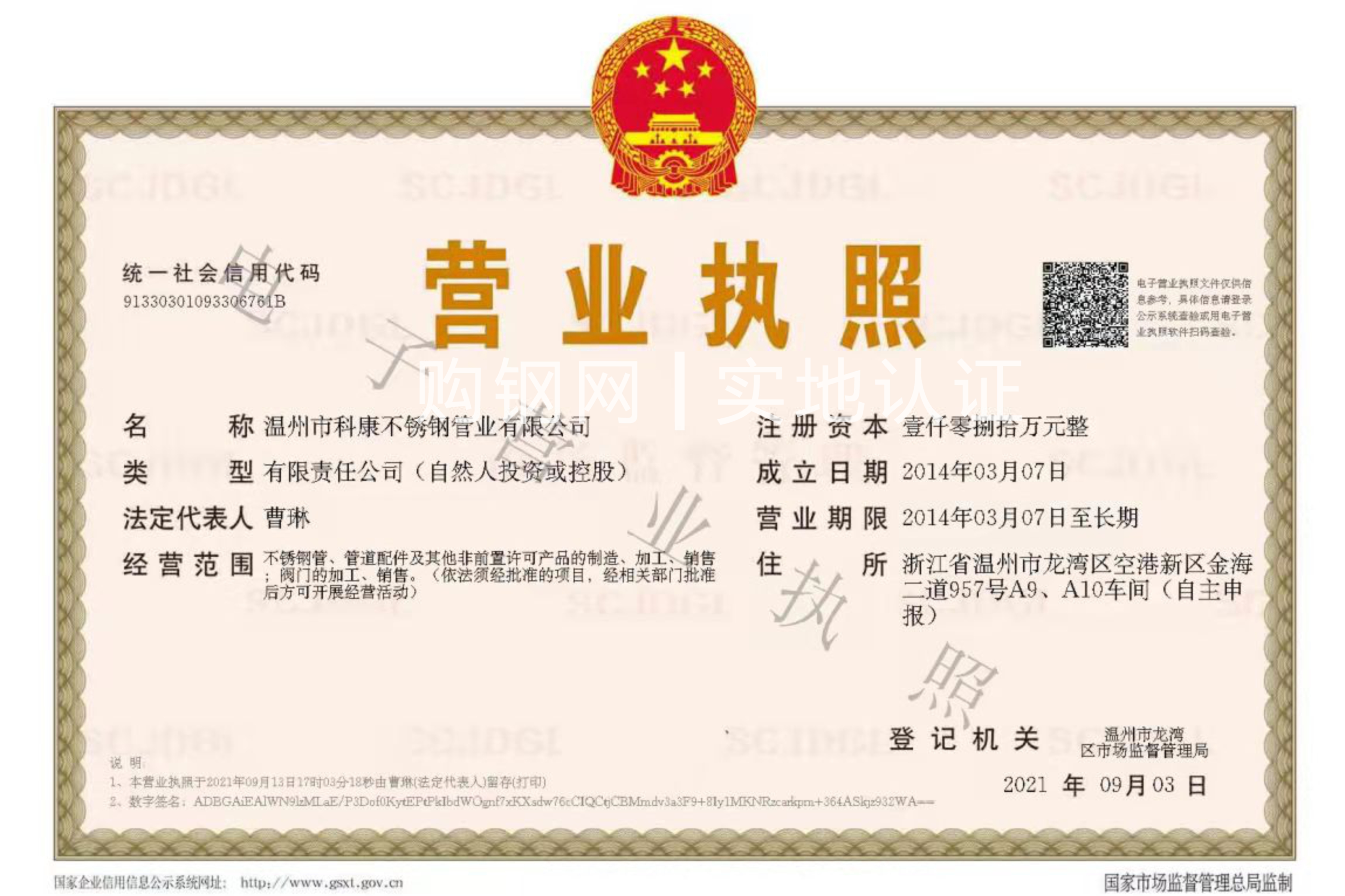 温州市科康不锈钢管业有限公司是一家专业生产、销售各种材质规格的不锈钢焊管、不锈钢无缝管、工业焊管、卫生级无缝管、卫生级焊管的现代化企业,生产的材质以304、316L为主。 温州市科康不锈钢管业有限公司坐落于美丽的东海之滨:浙江温州,本公司周边交通发达、货运便利。公司所在地温州龙湾区永强是全国最大的不锈钢管、阀门、不锈钢法兰生产基地。 公司产品质量上乘,备货充足,价格优惠,欢迎来厂里参观,下订单!温州市科康不锈钢管业有限公司订货电话:15067747758 18668711031 欢迎新老顾客来电洽谈业务!