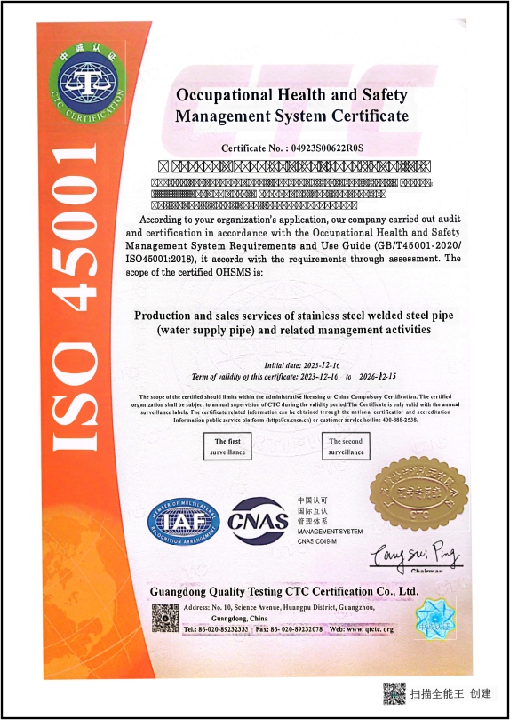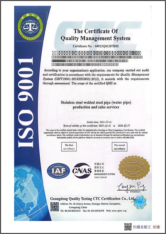 公司拥有生产许可证,配备光学检测仪,涡流和超声波探伤设备,万能材料试验机、金相显微镜、硬度计、分钢仪等现代化质量检测设备,产品材质有:TP316L,TP321,TP304,201等,产品质量达到GMP要求。